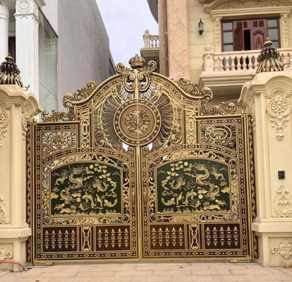 - Cổng nhôm đúc mang giá trị thẩm mỹ. Nó góp phần tạo nên 1 không gian sang trọng và đẳng cấp. Các họa tiết trên bề mặt cổng được chạm khắc tỉ mỉ, tinh tế. Ngoài ra, cổng còn được sơn giả cổ, phù hợp với kiến trúc của lâu đài, biệt thự.